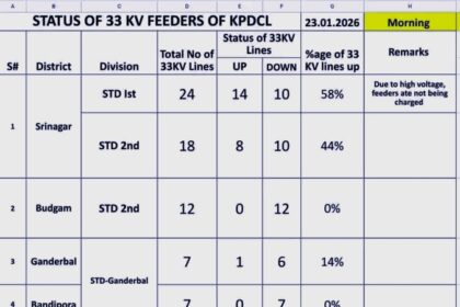 Srinagar, Jan 23: The active power load in the Kashmir Valley…